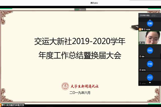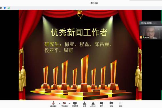 6月24日,best365英国体育在线大学生新闻通讯社(以下简称“大新社”) 2019-2020学年年度总结暨换届大会通过腾讯会议线上召开,学院党委副书记刘增福,大新社指导老师赵欣及大新社全体成员出席了会议。会议由大新社社长奚邦顺主持。